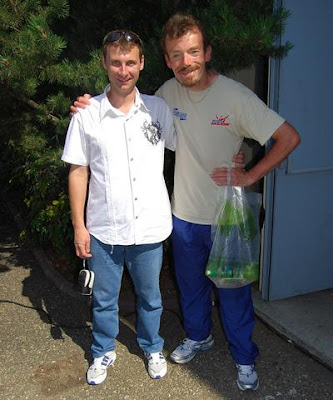 Laurent Bovin et Alexeï Khorzyk à Colmar. Alexeï a prêté à l'équipe de Laurent un VTT 1 heure avant le départ de Neuilly sur Marne.